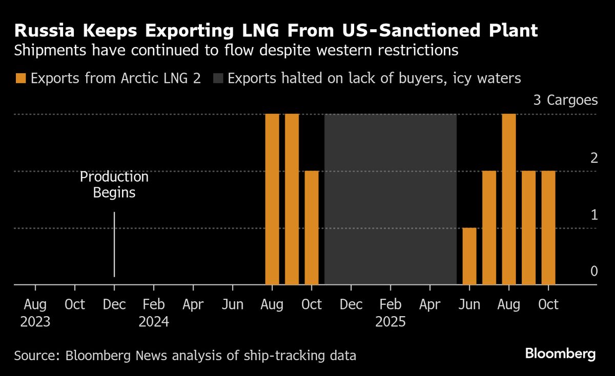 A US-sanctioned liquefied natural-gas plant in Russia’s arctic region has pressed on with fuel shipments as Moscow seeks to circumvent western restrictions and test President Donald Trump.